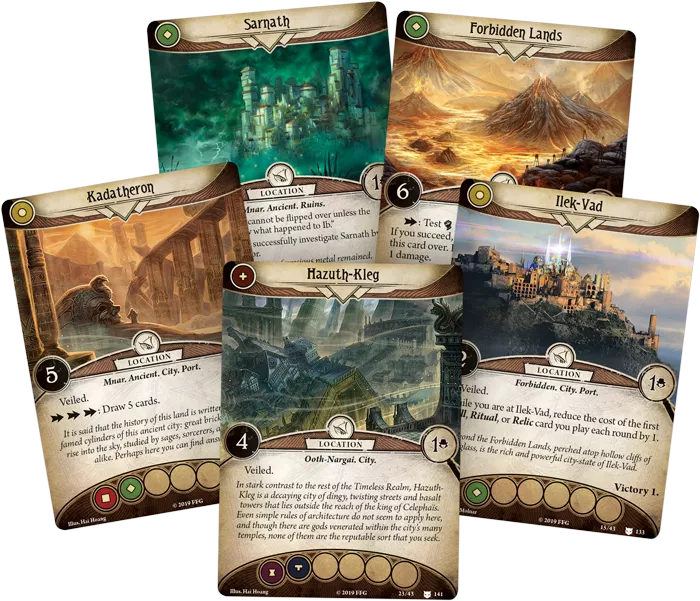 Journey across the dreamlands in The Search for Kadath, the first Mythos Pack in The Dream-Eaters cycle for Arkham Horror: The Card Game! After taking your first steps into the Dreamlands, your mind teems with anxiety over the quest ahead, dangers you left in the waking world, and the fate of dreamers who have come before you. Are they also somewhere in these expansive lands? Perhaps if you find the lost castle and return with proof of the Dreamlands, you can save everyone: yourself, your friends, and the other dreamers as well. So, despite the advice of the Dreamlands’ inhabitants, you and your companions seek unknown Kadath, where the gods dwell.