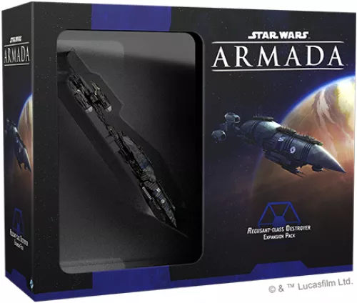 This pack includes everything you need to add 1 Recusant-class Destroyer to your games of Star Warsâ„¢: Armada including 1 painted plastic ship with base and fin, 2 ship cards, 14 upgrade cards, and 13 tokens.
