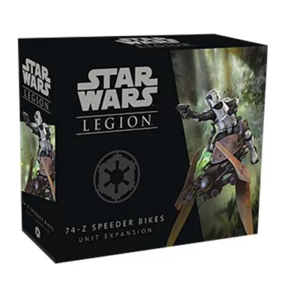 The 74-Z Speeder Bikes Unit Expansion includes a unit of two 74-Z Speeder Bikes, and all the unit cards and upgrade cards you need to expand your forces with these lightning-fast speeders.