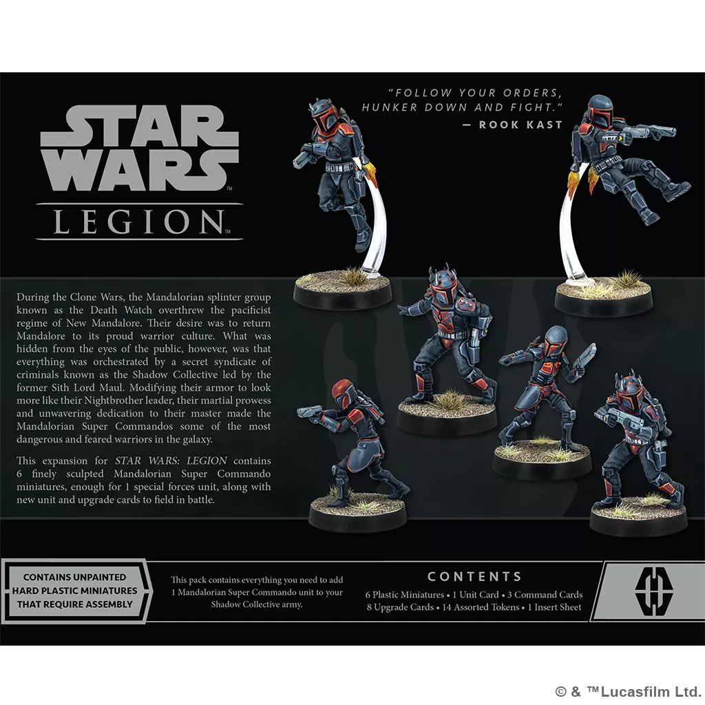 Mandalorian Super Commandos buigen de melkweg naar Maul’s wil in deze uitbreiding voor Star Wars: Legion! Deze elite Mandaloriaanse krijgers, die voorheen lid waren van de beruchte Death Watch, volgen nu Maul omdat hij de Darksaber hanteert. Met hen hebben spelers een krachtige nieuwe optie voor speciale troepen voor hun Shadow Collective-troepen. Naast zes Mandalorian Super Commando-miniaturen en een eenheidskaart, vinden spelers in deze uitbreiding ook drie commandokaarten die speciaal zijn ontworpen voor gebruik met huursoldaten, evenals acht upgradekaarten die hen uitnodigen om hun eenheden aan te passen met zware wapens, nieuwe uitrusting, en meer!