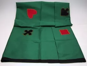 Een Groen Kaartkleed 120x 180 cm groot. Het kleed is wasbaar en heeft een zwarte bies.Met dit kleed kan iedereen aan tafel de kaarten makkelijk op pakken en glijden de kaarten niet de hele tafel over.