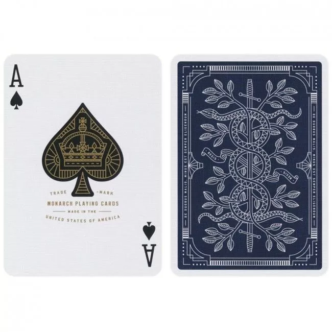 Pokerkaarten Blue Monarchs Theory11 Gedrukt op Premium Bicycle papier. Afmeting 88 x 63 mm, internationale pop. Afgedrukt op premium papier met een hoogwaardige afwerking. Standaard 2 index.