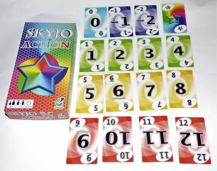 New version of Skyjo which adds Action Cards and Joker Cards.