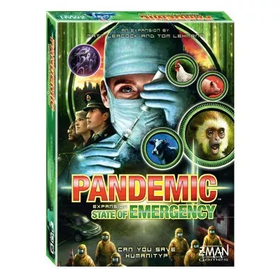 Expansieset voor het bordspel Pandemic. State of Emergency biedt drie nieuwe uitdagingen namelijk de Hunterlands Challenge, de Emergency Events Challenge en de Superbug Challenge. In de Hinterlands Challenge verspreid het virus zich via dieren naar mensen. In de Emergency Events Challenge maak je slim gebruik van quarantaine om de wereldwijde verspreiding van de ziekte te voorkomen. De Superbug Challenge introduceert een vijfde ziekte die de wereld bedreigt en onbehandelbaar is. Ga op zoek naar een medicijn en produceer voldoende vaccinatie om deze superbug ziekte te overwinnen.